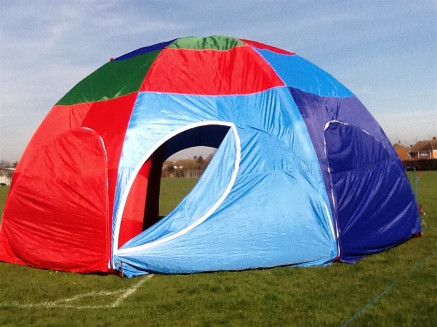 Our inflatable 8 legged dome tent measuring 8m in diameter