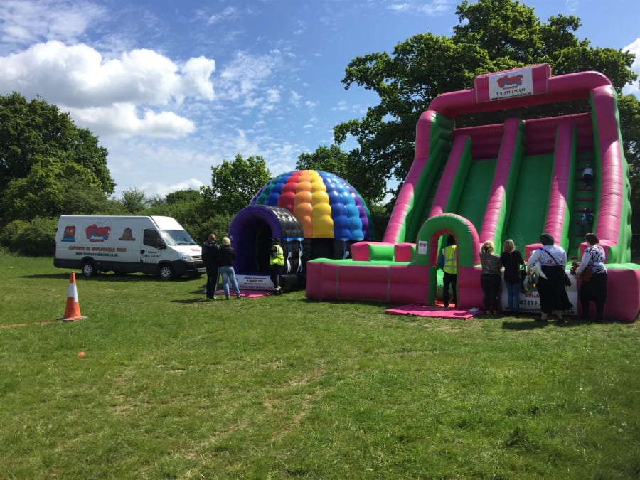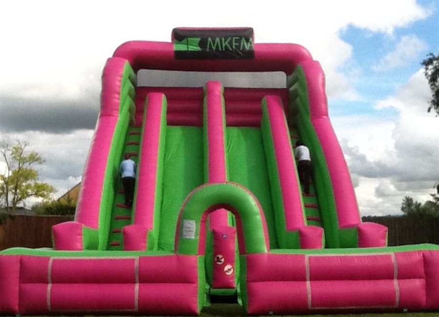 The Bounce Unlimited ' dual lane mega slide comes complete with the slide location mentioned on air with all charitable bookings